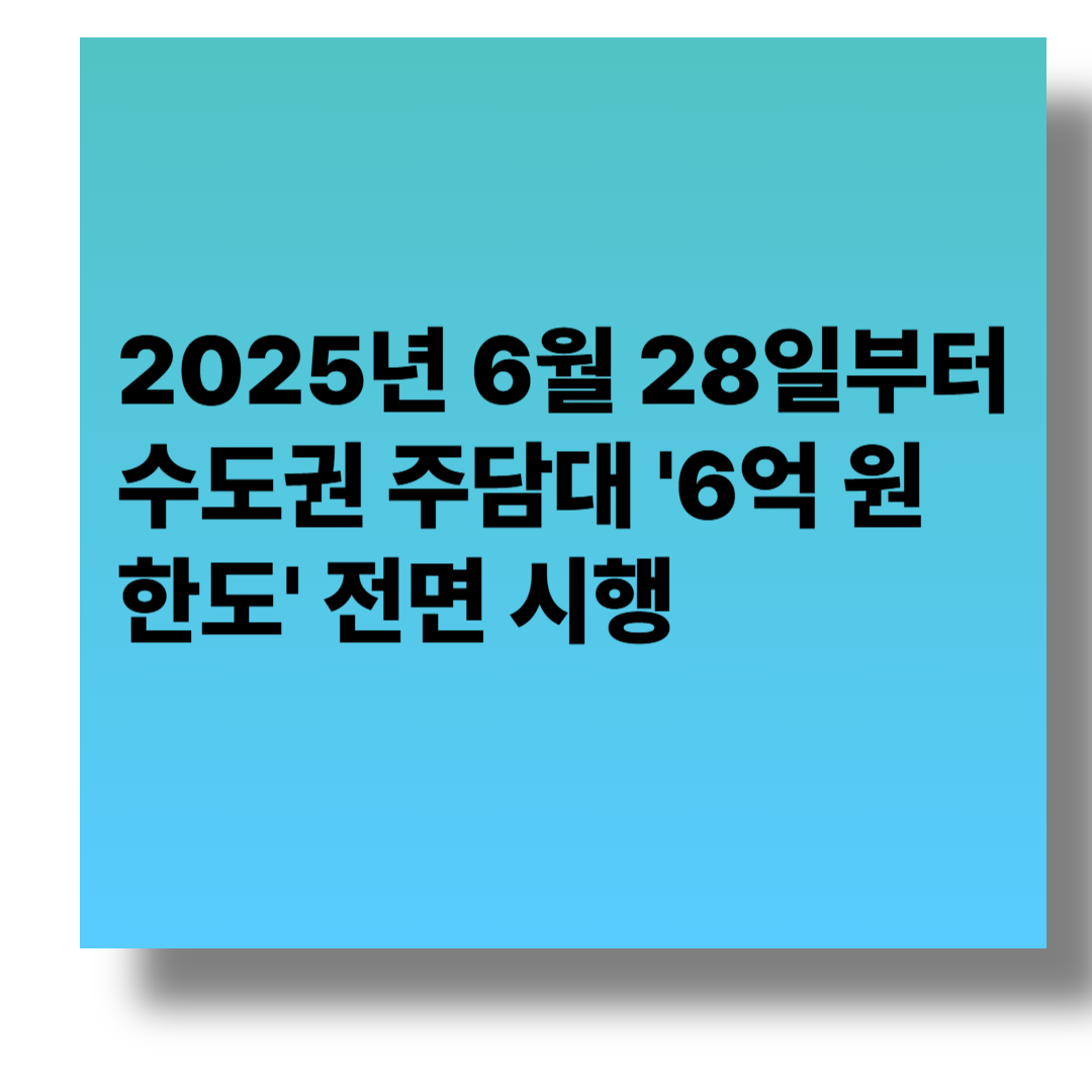 | 주담대 6억 제한 | 수도권 주택 구입 시 대출 한도가 최대 6억으로 제한 |